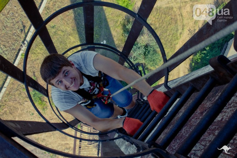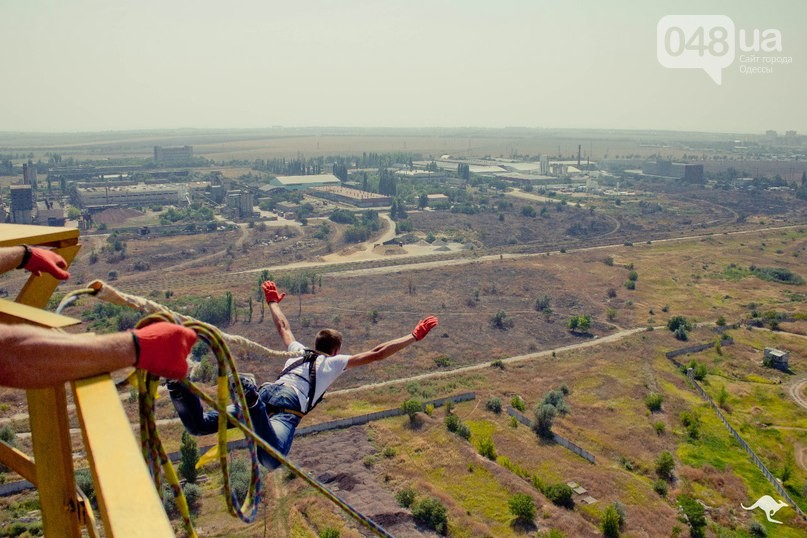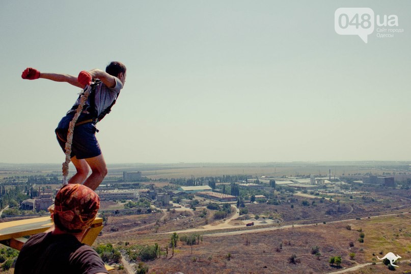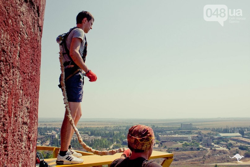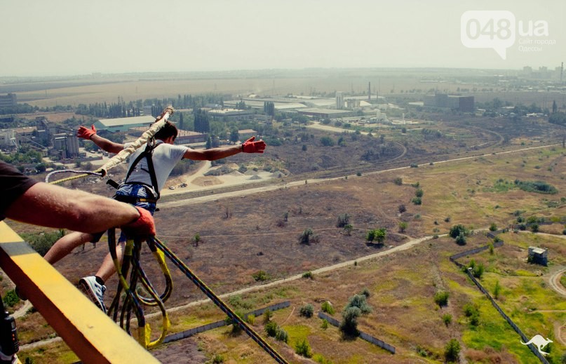 Часто любители этого вида спорта для прыжков выбирают мост. Но в Одессе решили прыгать с трубы завода «Центролит».